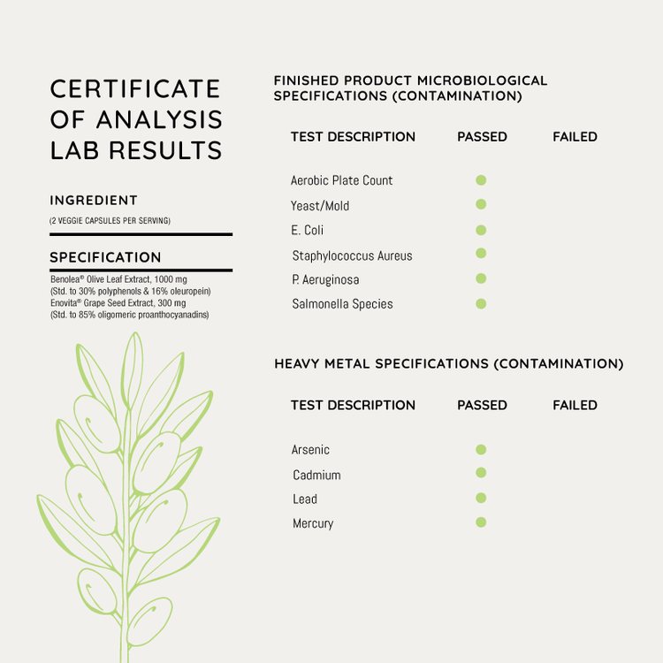 The science behind polyphenols and heart health is the foundation of Durable BLOOD PRESSURE’s unique combination of Enovita® grape seed extract and Benolea® olive leaf extract.*