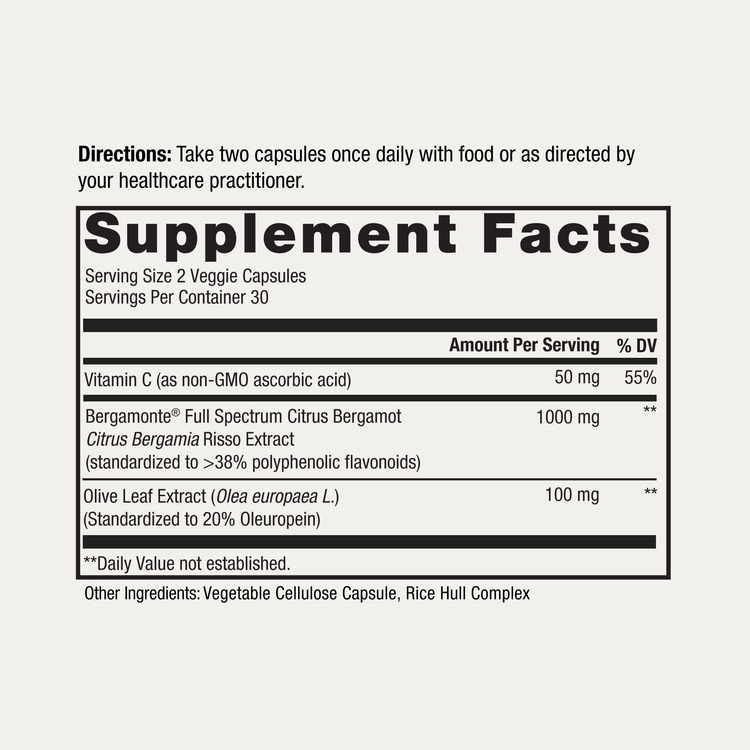 This state-of-the-art formula features Bergamonte® citrus bergamot, standardized olive leaf extract and non-GMO vitamin C—a unique combination you will not find in any other supplement on the market.*