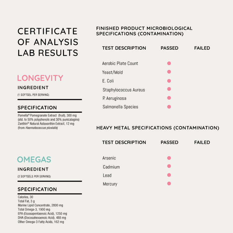 By combining Durable LONGEVITY and Durable OMEGAS, this bundle supports full-spectrum cellular health, brain and cardiovascular function, healthy skin, joints and immune balance—without the risks or inconsistencies of low-potency or impure supplements.*