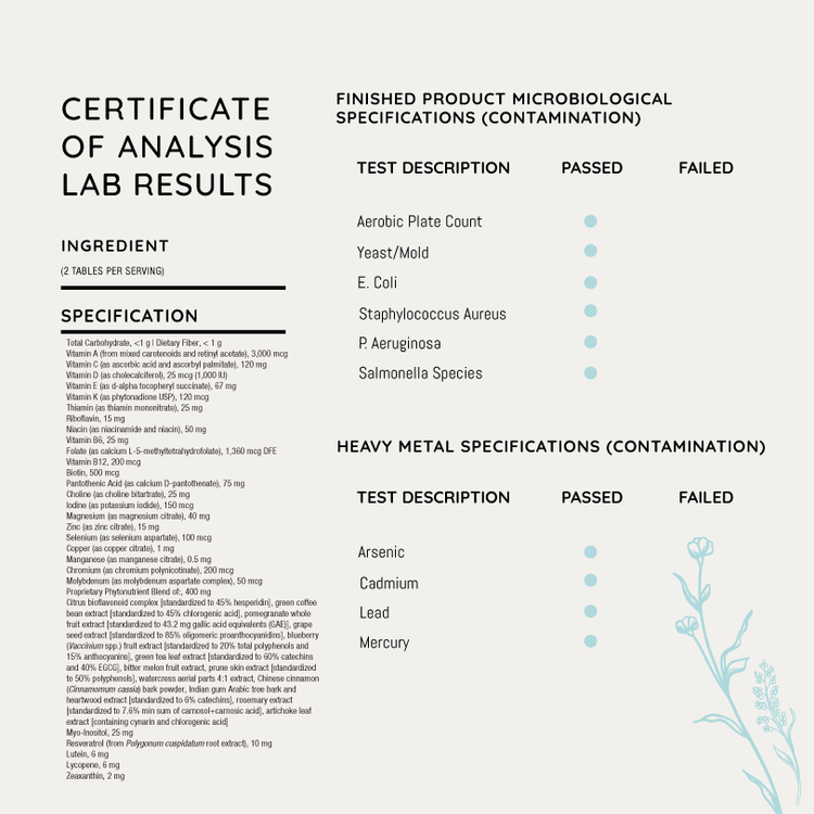 A high-potency blend of 20+ essential vitamins and minerals your body needs to thrive—in forms shown to be most effective in the research and at clinical doses that meet or exceed the RDA.
