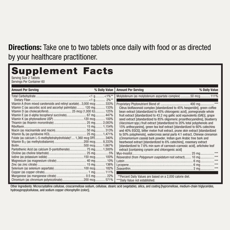 For adults only. Take one to two tablets once daily with food (ideally with breakfast or lunch) or as directed by your healthcare practitioner. Dr. Passero typically recommends two tablets daily.