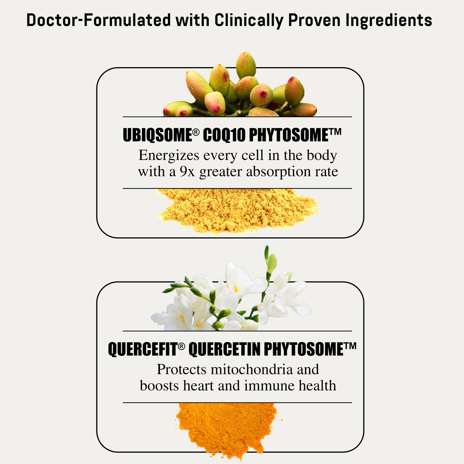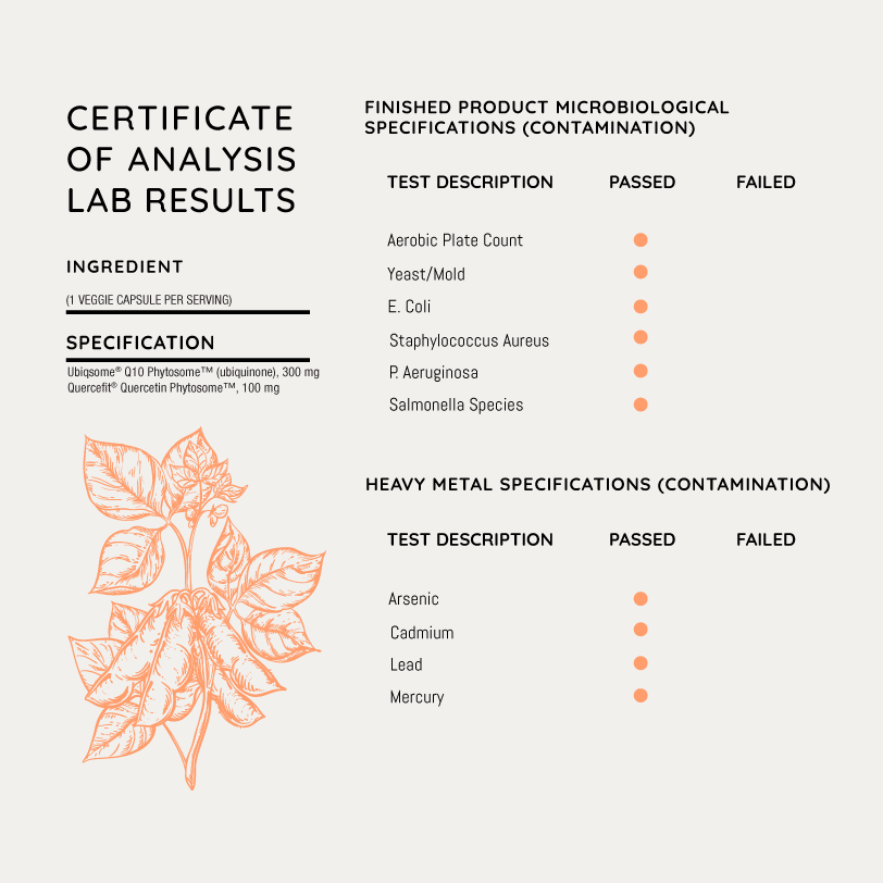 Italian-sourced Quercefit® Quercetin Phytosome™ utilizes the same breakthrough phytosome technology as Ubiqsome® and has been scientifically proven to provide up to 2,000% better absorption than standard quercetin, unlocking the full power of this potent heart-healthy, immune-boosting antioxidant. Very few CoQ10 supplements on the market feature quercetin, and those that do include generic quercetin that is far less absorbable and significantly less effective.*