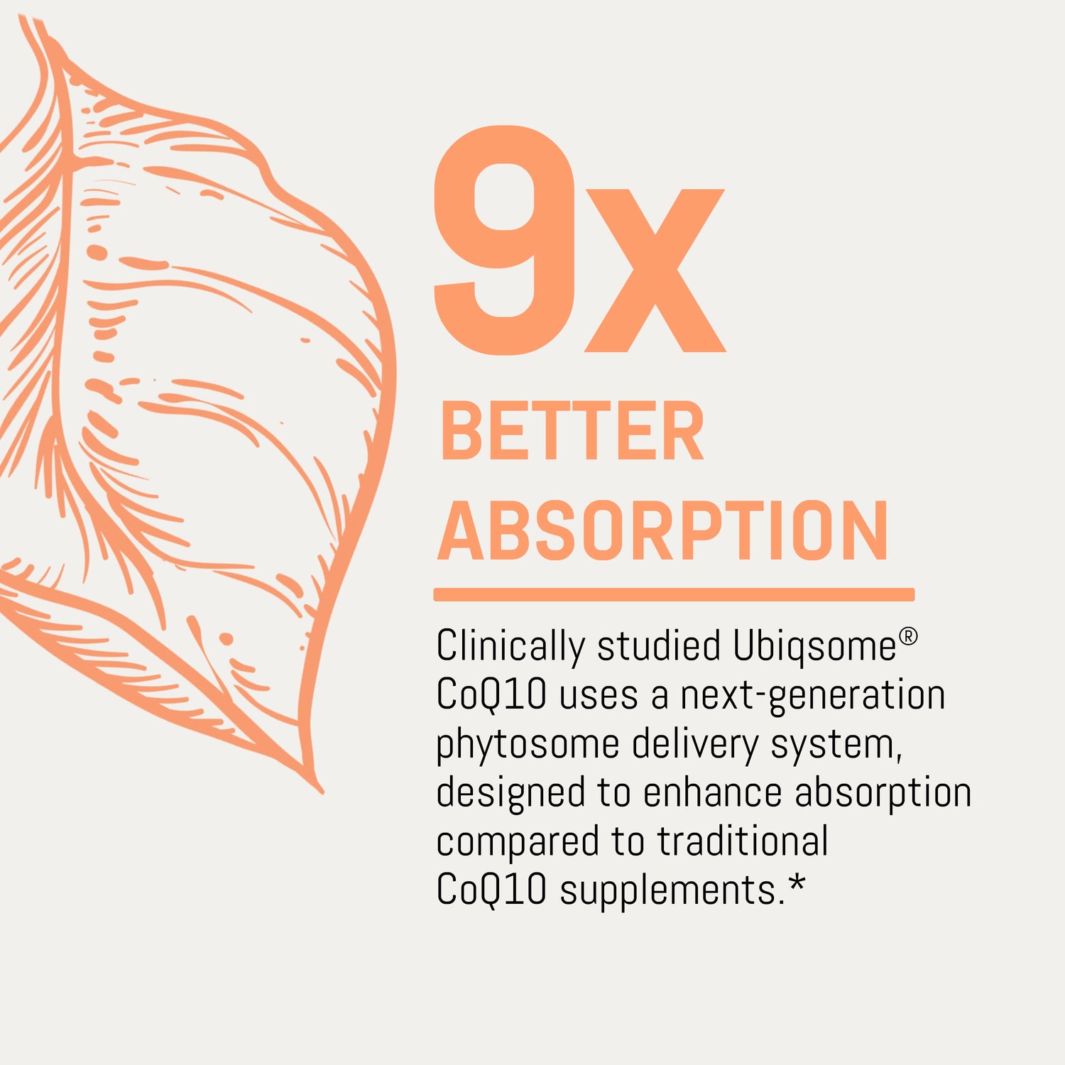 A super-absorbable CoQ10 (ubiquinone) made with a cutting-edge phytosome delivery system shown to offer 9x better absorption than standard CoQ10.*