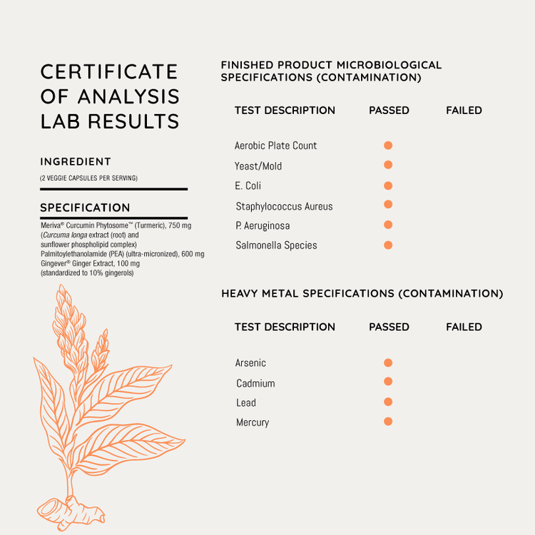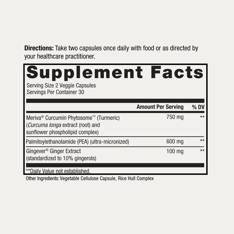 Standardized to provide 10% gingerols, this high-potency ginger extract synergistically enhances PEA and turmeric’s pain relief benefits.*