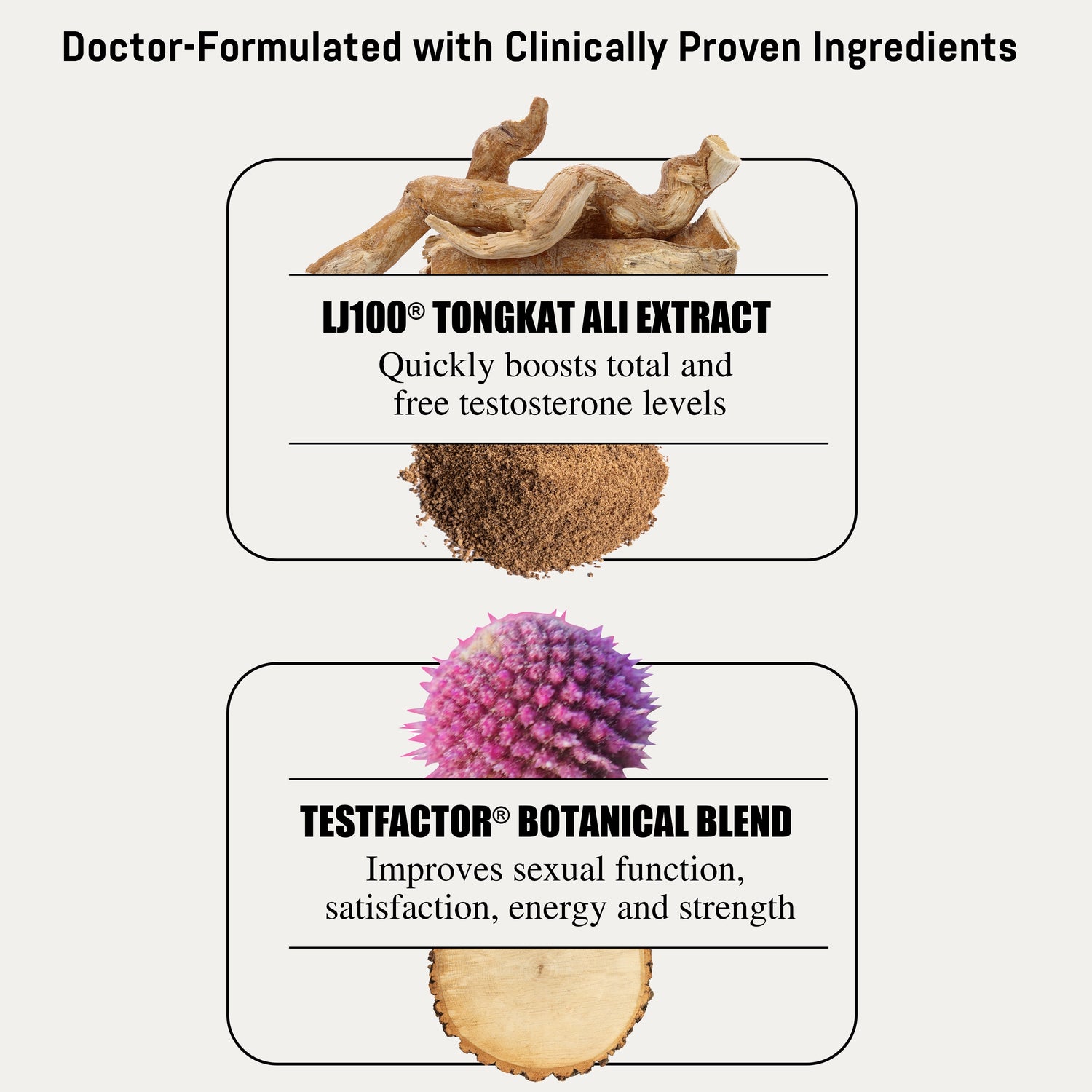 Clinical trials show these powerful botanical ingredients can safely and effectively increase testosterone levels, enhance sexual performance, boost physical vitality and reduce cortisol levels—often within just a few weeks.*