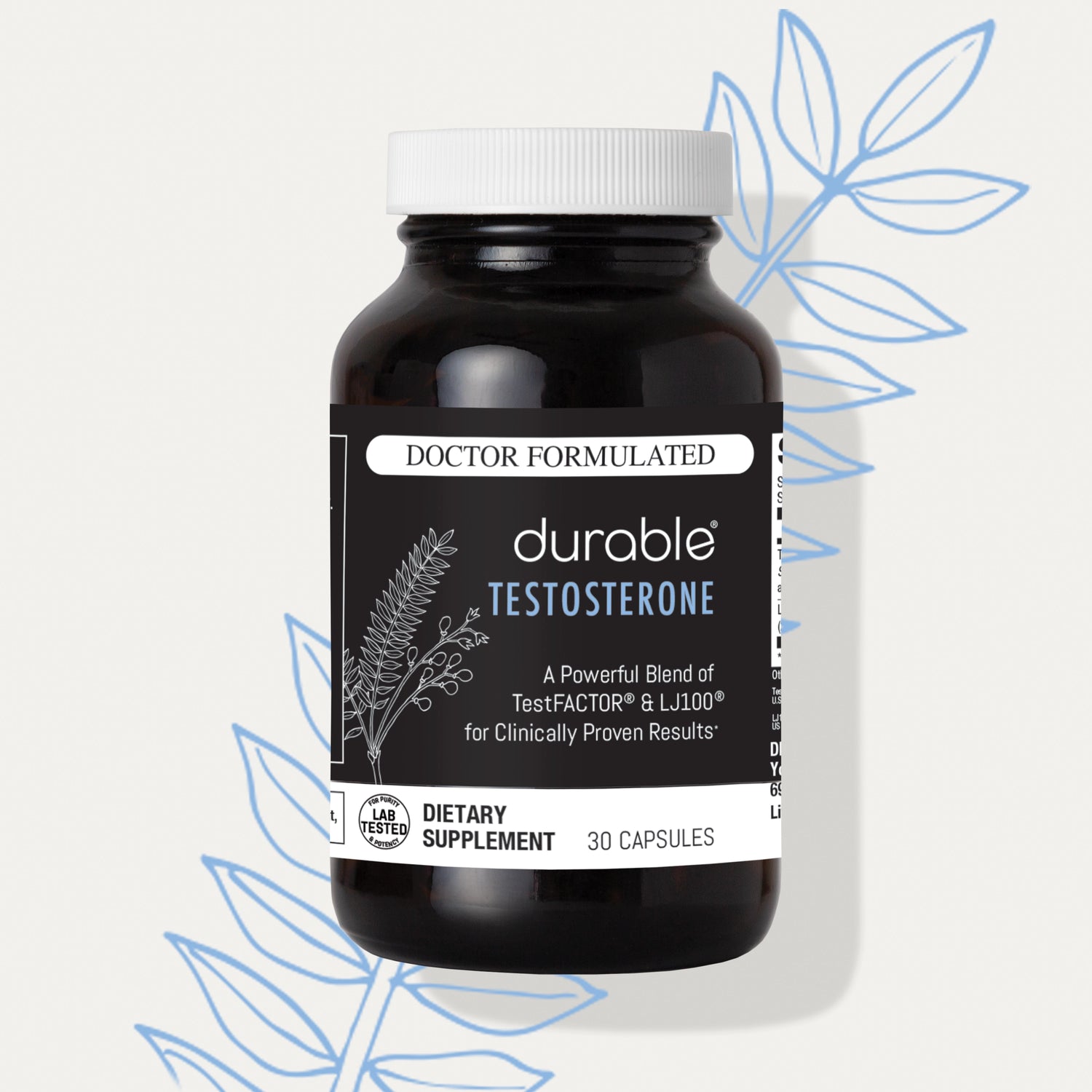 Drawing on his 20+ years of experience helping men optimize their health, Dr. Passero formulated Durable TESTOSTERONE with the dual-action combination of clinically proven LJ100® tongkat ali and TestFACTOR® botanical blend. You won’t find this unique and powerful combination of ingredients in any other supplement in the world.*