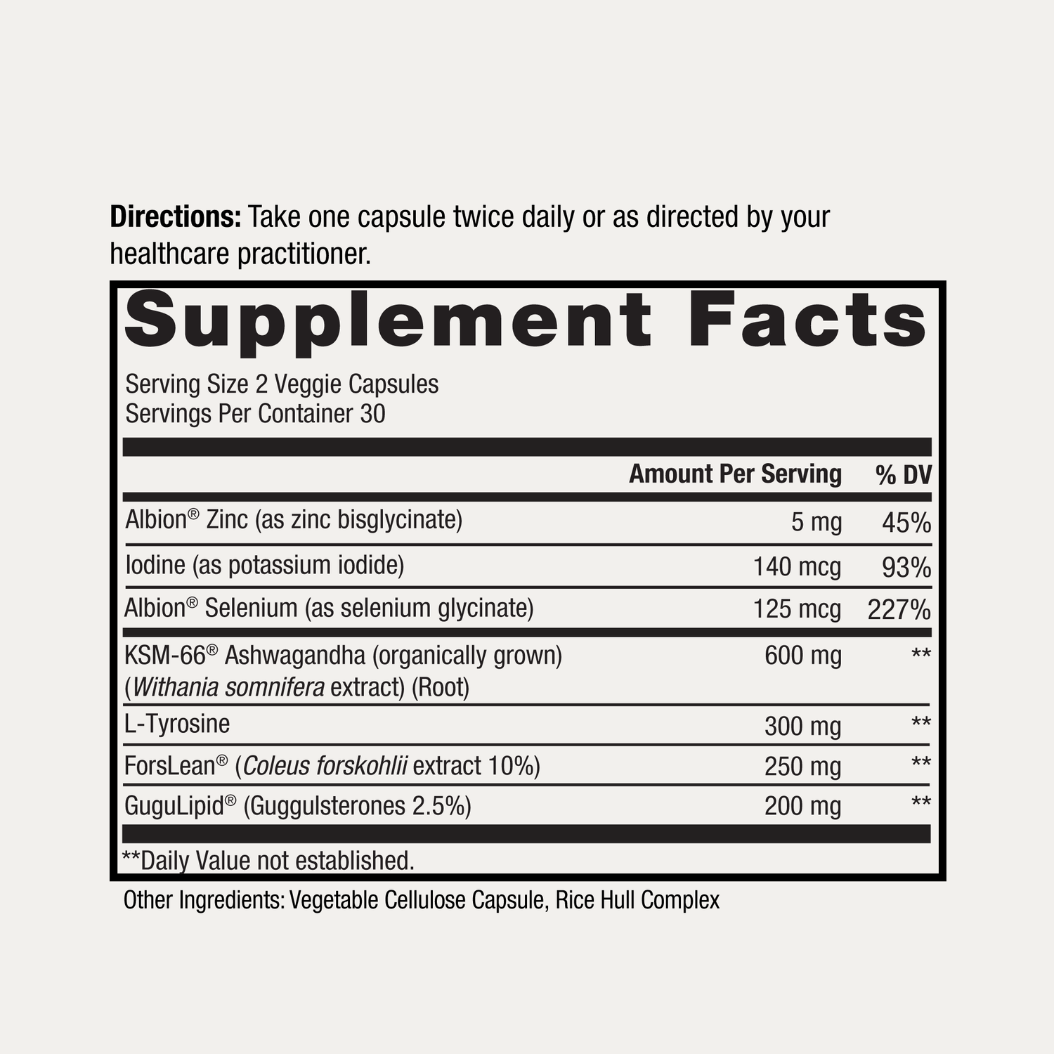- Supporting your adrenals and reducing cortisol with KSM-66®—critical for proper thyroid function under stress