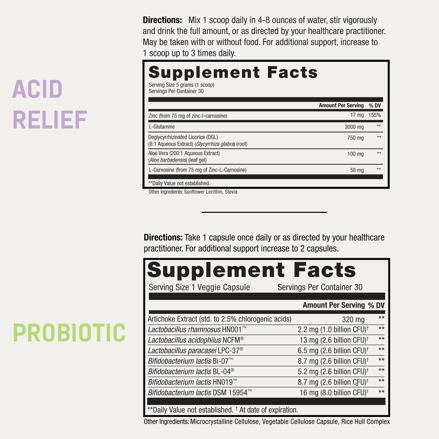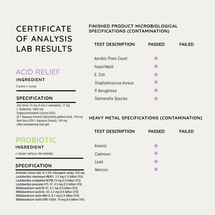 Instead of suppressing symptoms through acid-blocking drugs or generic probiotics, Durable ACID RELIEF PLUS addresses root causes through two highly targeted formulas. One supports and repairs the gut lining while calming inflammation, and the other restores microbial balance and digestive efficiency—especially in the upper GI tract, which most probiotics neglect.*