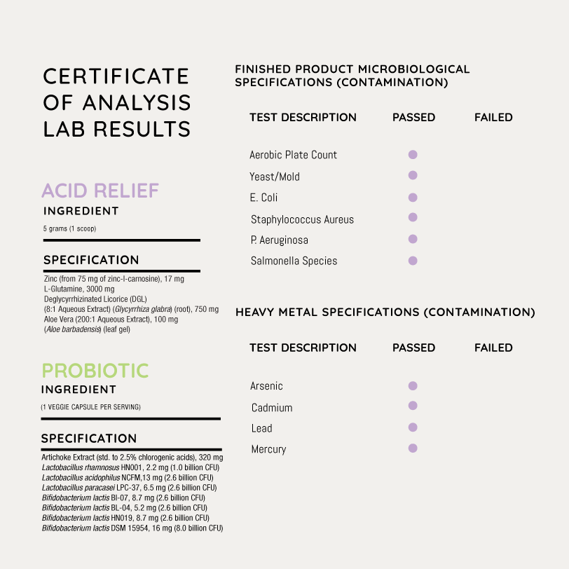 Durable ACID RELIEF delivers immediate symptom relief in an easy-to-mix, pleasant-tasting powder containing clinically backed doses of DGL (deglycyrrhizinated licorice), aloe vera, glutamine and zinc carnosine. This unique combination of ingredients also promotes healing and optimal functioning of all parts of the digestive system by helping to improve the integrity of the gut lining and reduce gastrointestinal permeability (leaky gut).*