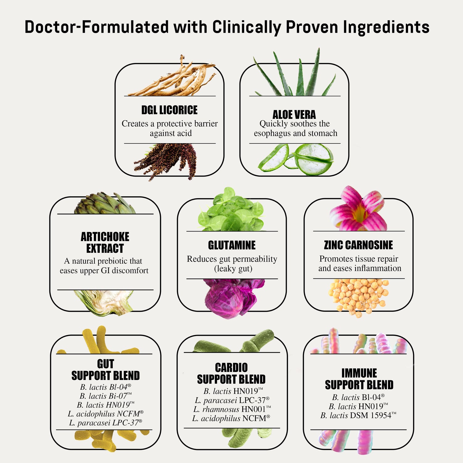 The clinically studied blend of B. lactis Bl-04®, B. lactis Bi-07™, B. lactis HN019™, L. acidophilus NCFM® and L. paracasei LPC-37® has been proven to alleviate digestive symptoms and improve overall GI health in 85% of people.*