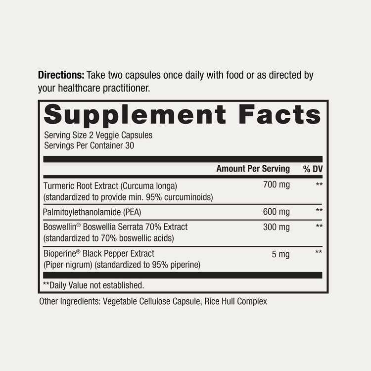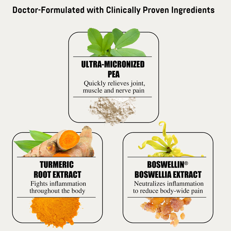Research-based doses of PEA, turmeric and boswellia provide unparalleled short-term and long-term relief from everyday aches and pains,