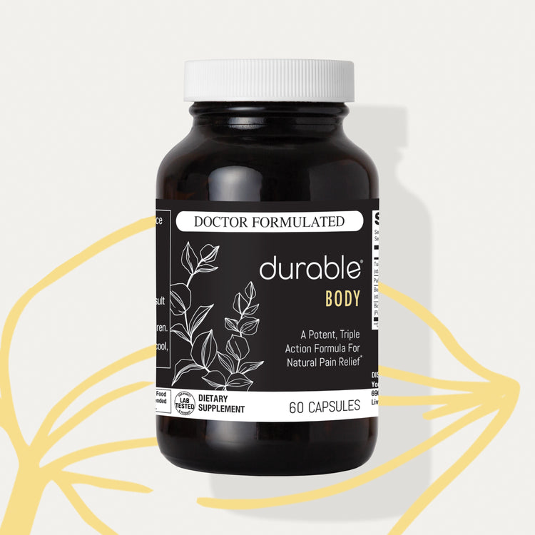 Dr. Kevin Passero formulated Durable BODY to be the most comprehensive and effective supplement of its kind by having it target multiple pain pathways—most supplements target just one. This provides unparalleled short-term and long-term relief from everyday aches and pains, greatly improving your mobility, flexibility and quality of life. It features a revolutionary nutrient called PEA which has been found to significantly reduce pain in just three weeks. It also features turmeric extract which is one of nature’s secret weapons for combating inflammation and Boswellin® ultra-pure boswellia extract which has been proven to support your joints and connective tissue.*