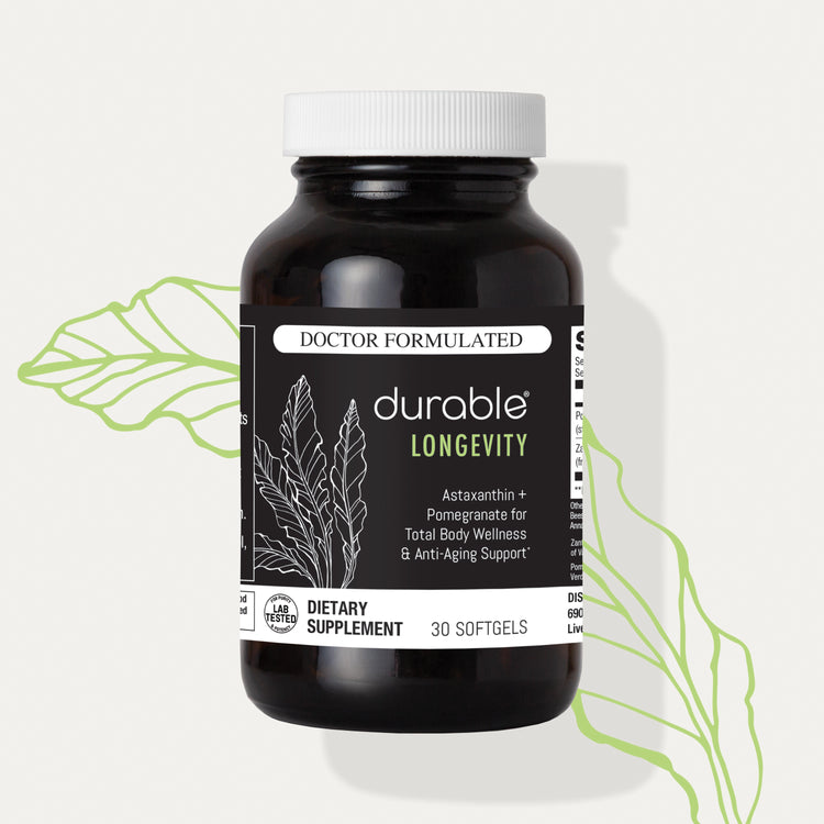 Dr. Passero says this is one supplement he takes each and every day to support cellular rejuvenation, resilient aging, and overall health and longevity. If you’re looking to optimize your cellular health and effectively slow down the aging process, you’ll find the antioxidant firepower you need in Durable LONGEVITY’s unique and potent combination of Zanthin® astaxanthin and Pomella® pomegranate extract.*
