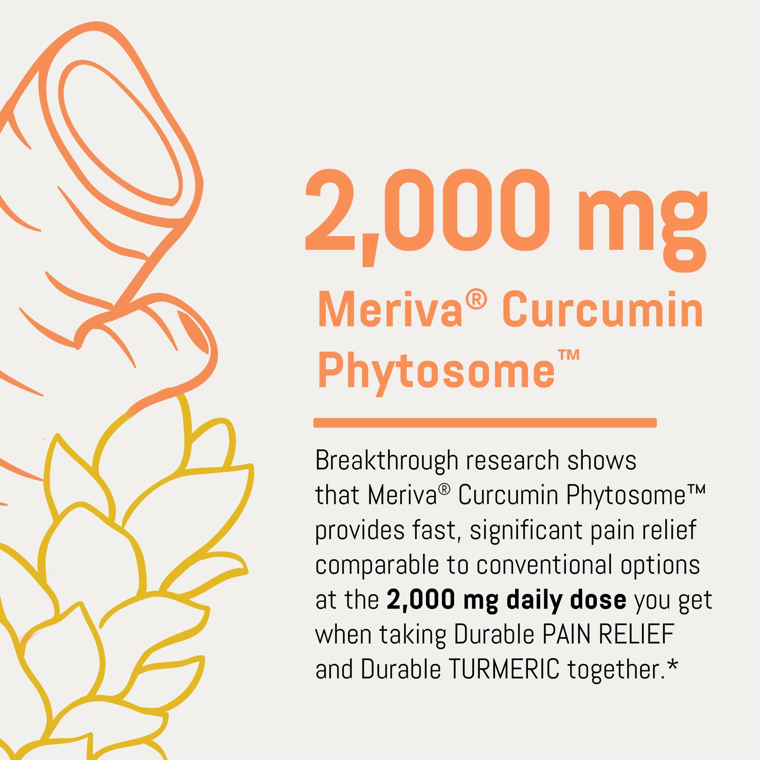 Durable PAIN RELIEF also includes a 750 mg dose of super-absorbable Meriva® Curcumin Phytosome™ and 100 mg of Gingever® ginger extract, which is standardized to 10% gingerols, for synergistic inflammation-fighting benefits.*